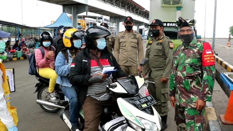 balitribune.co.id | Amlapura - Hari kedua sejak pemberlakuan wajib rapid test Antigen terhadap penumpang atau wisatawan domestik yang masuk ke Bali lewat jalur darat, melalui pintu Pelabuhan Gilimanuk, Jembrana dan Pelabuhan Padang Bai, Karangasem, petugas makin memperketat penjagaan di pintu masuk Bali tersebut. Di Pelabuhan Padang Bai, Minggu (20/12/2020) petugas gabungan dari TNI, Polri, Kantor Kesehatan Pelabuhan dan dari PT ASDP, berjaga di Deramga I dan Dermaga II pelabuhan, untuk memeriksa penumpang yang baru turun dari kapal.