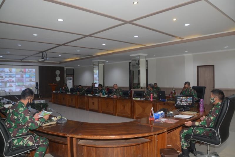 Bali Tribune/ Inspektur Kodam (Irdam) IX/Udayana Brigjen TNI Arudji Anwar, saat membuka kegiatan "Entry Meeting Current Audit Itdam IX/Udayana" secara virtual, Senin (6/7).