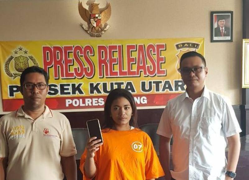 BALI TRIBUNE - Seorang cewek bernama Yoana Ngongo (26) ditangkap anggota Reskrim Polsek Kuta Utara karena diduga melakukan tindak pidana pencurian handphone miliknya rekan kerja, Gusti Komang Krismayanti (20). Akibatnya, korban menderita kerugian sebesar Rp3.629.000. Kapolsek Kuta Utara, AKP Johannes Nainggolan, SIk didampingi Kanit Reskrimnya IPTU Androyuan Elim, SI.k., MH siang kemarin menjelaskan, penangkapan tersangka berdasarkan laporan korban dengan nomor laporan polisi; LP-B/338/IX/2018/BALI/RES BDG/Sek Kuta Utara, tanggal 26 september 2018. Dalam laporannya, warga Dalung Permai ini mengaku kehilangan handphone di tempat ia bekerja di toko Takasi Mura di Jalan Raya Kerobokan Kuta Utara, Kabupaten Badung.  Pada pukul 10.00 Wita, korban yang sedang dalam kondisi datang bulan ke kamar mandi. Setelah keluar dari kamar mandi, handphonenya yang ditaruh di atas meja sudah tidak ada. "Karena sempat dicari tetapi tidak ketemu, sehingga dilaporkan ke Polsek," ungkapnya. Setelah menerima laporan dari korban, team opsnal Polsek Kuta Utara yang dipimpin Panit opsnal I Made Suanda langsung mendatangi lokasi kejadian melakukan penyelidikan terhadap diduga elaku melalui ciri ciri pelaku sesuai data dan hasil introgasi yang telah dilakukan.  Kemudian team opsnal bergerak bersama korban dan saksi untuk menyelidiki keberadaan diduga pelaku, dengan hasil dapat mengamankan diduga pelaku di tempat kerjanya toko Takasi Mura berserta barang bukti handphone hasil curian. " Korban dan pelaku adalah teman kerja. Pengakuan tersangka, baru kali pertama ini tetapi masih kita lakukan pendalaman dan pengembangan lebih lanjut. ujarnya.