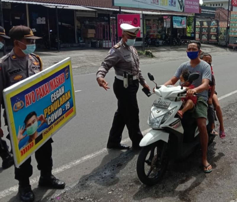 Balitribune.co.id |Tabanan  - Polres Tabanan tiada henti terus turun bersinergi dengan TNI Kodim1619 Tabanan, bersama Sat Pol PP, melaksanakan kegiatan YUSTISI gabungan serentak. Selasa 3 Nopember 2020 Kegiatan yang dipimpin oleh Kasubagdal Ops Iptu I Nengah Widia, SH.,MH., untuk Polres Tabanan menurunkan Satgas Operasi Aman Nusa Agung 2020 bergabung dengan TNI Kodim dan Sat Pol PP Tabanan, menyasar SPBU, Pasar Tradisional, Komplek pertokoan, Komplek Perumahan,  Komlek pemukiman, pusat Perberalanjaan Modern ,  Jalan Raya, tempat Ibadah, Obyek Wisata dan pabrik /perusahaan.