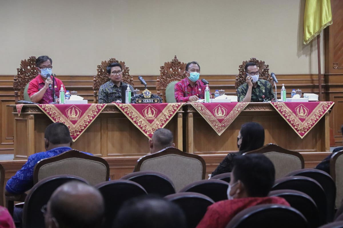 balitribune.co.id | Mangupura - Satgas Covid-19 dan Satgas PMK Kabupaten Badung melaksanakan rapat lanjutan terkait percepatan Vaksinasi Booster dan penanganan Penyakit Mulut dan Kuku (PMK) di Gumi Keris. Rapat dipimpin langsung Sekda Badung Wayan Adi Arnawa bertempat di Puspem Badung, Selasa (19/7).