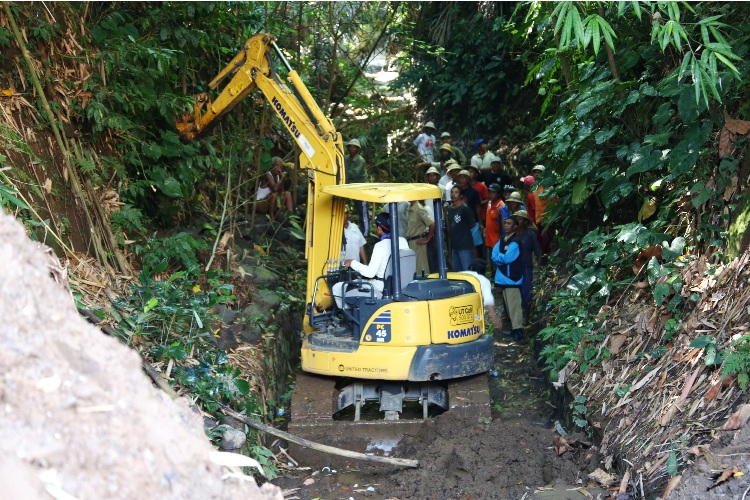 Bali Tribune, Semarapura - Puluhan hektare lahan padi di Subak Penasan, Desa Tihingan, Kecamatan Banjar Sangkan, Klungkung terancam fuso akibat longsor yang menimbun aliran Sungai Calagi, Senin (21/1/2019) lalu. Dinas PU Kabupaten Klungkung menurunkan 1 unit alat berat untuk menembus material agar air kembali mengalir. Namun usaha yang dilakukan pada Senin (11/2) itu belum membuahkan hasil.