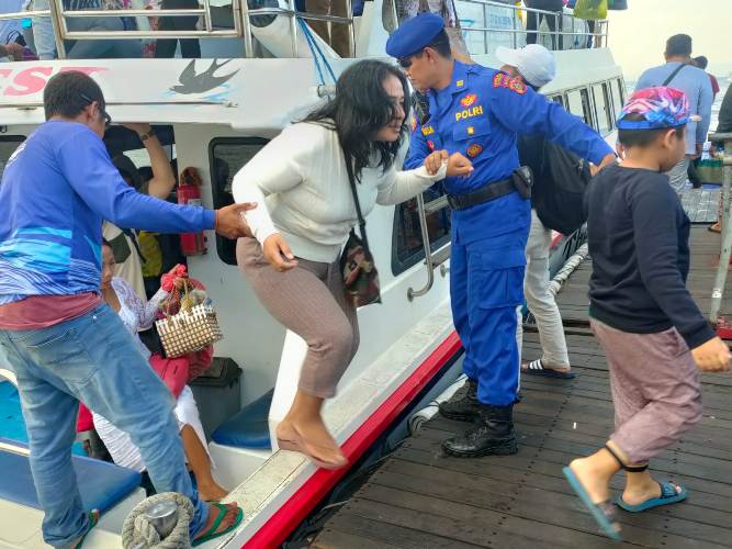 balitribune.co.id | Semarapura - Dalam rangka Pujawali di Pura Dalem Ped Nusa Penida, Personel Sat Polairud Polres Klungkung melaksanakan pengamanan di Pelabuhan The Angkal Desa Kampung Kusamba Kec. Dawan Kab. Klungkung, Kamis (4/5/23).