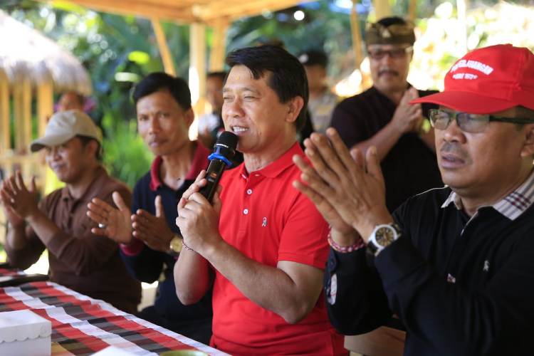 balitribune.co.id | Semarapura - Sebagai bentuk motivasi semangat dan dukungan agar nantinya hasil produktivitas semakin meningkat. Bupati Klungkung I Nyoman Suwirta menyerahkan secara simbolis pupuk kompos olahan dari TOSS Center kepada petani budidaya Tanaman Porang di Dusun Swelagiri, Desa Aan, Kecamatan Banjarangkan, Kabupaten Klungkung, Minggu (23/10/2022).