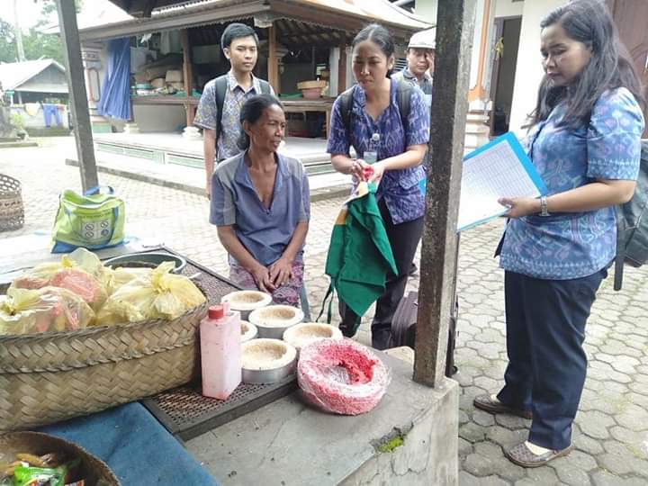 Balitribune.co.id | Bangli - Dinas Perindustrian dan Perdagangan (Disperindag) Bangli bersama Badan Pengawas Obat dan Makanan (BPOM) Denpasar yang dipimpin Ni Wayan Ayu Sukani melakukan pengecekan makanan tradisional yang menggunakan perawarna tekstil, di Banjar Pukuh, Desa Tiga, Kecamatan Susut,