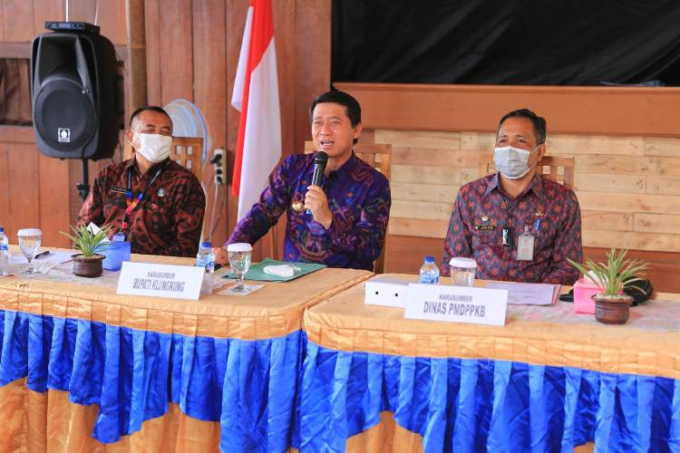 balitribune.co.id | Semarapura - Bupati Klungkung I Nyoman Suwirta menjadi narasumber Rapat Koordinasi (Rakor) Dalam Rangka Pelaksanaan Fasilitasi Advokasi Program Ketahanan Keluarga Anti Narkoba Berbasis Sumber Daya Pembangunan Desa di Warung Wisata Kaliunda, Desa Paksabali, Kecamatan Dawan, Kabupaten Klungkung, Selasa (29/3/2022).