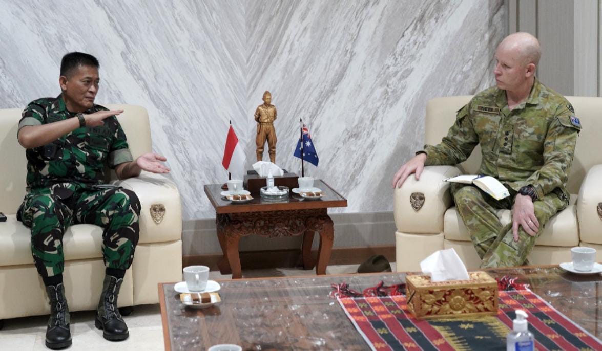 balitribune.co.id | Denpasar - Pangdam IX/Udayana Mayjen TNI Sonny Aprianto, SE, MM, menerima kunjungan kehormatan dari Atase Darat Kedutaan Besar (Kedubes) Australia untuk Indonesia, Colonel Stephen Daley beserta rombongan di Ruang Tamu Pangdam di Makodam IX/Udayana, Denpasar, Selasa (8/3).