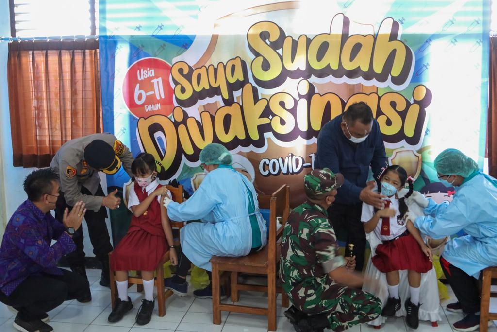 balitribune.co.id | Negara – Vaksninasi covid-19 pada anak kini di mulai di Jembrana. Sasaran vaksinasi ini adalah anak usia 6 sampai 11 tahun. Vaksinasi perdana sudah dilaksanakan Rabu (15/12) dan akan berlanjut hingga ditargetkan tuntas dalam dua pecan ini. Anak-anak pun tampak antusias mengikuti vaksinasi yang dilaksanakan di sekolah.