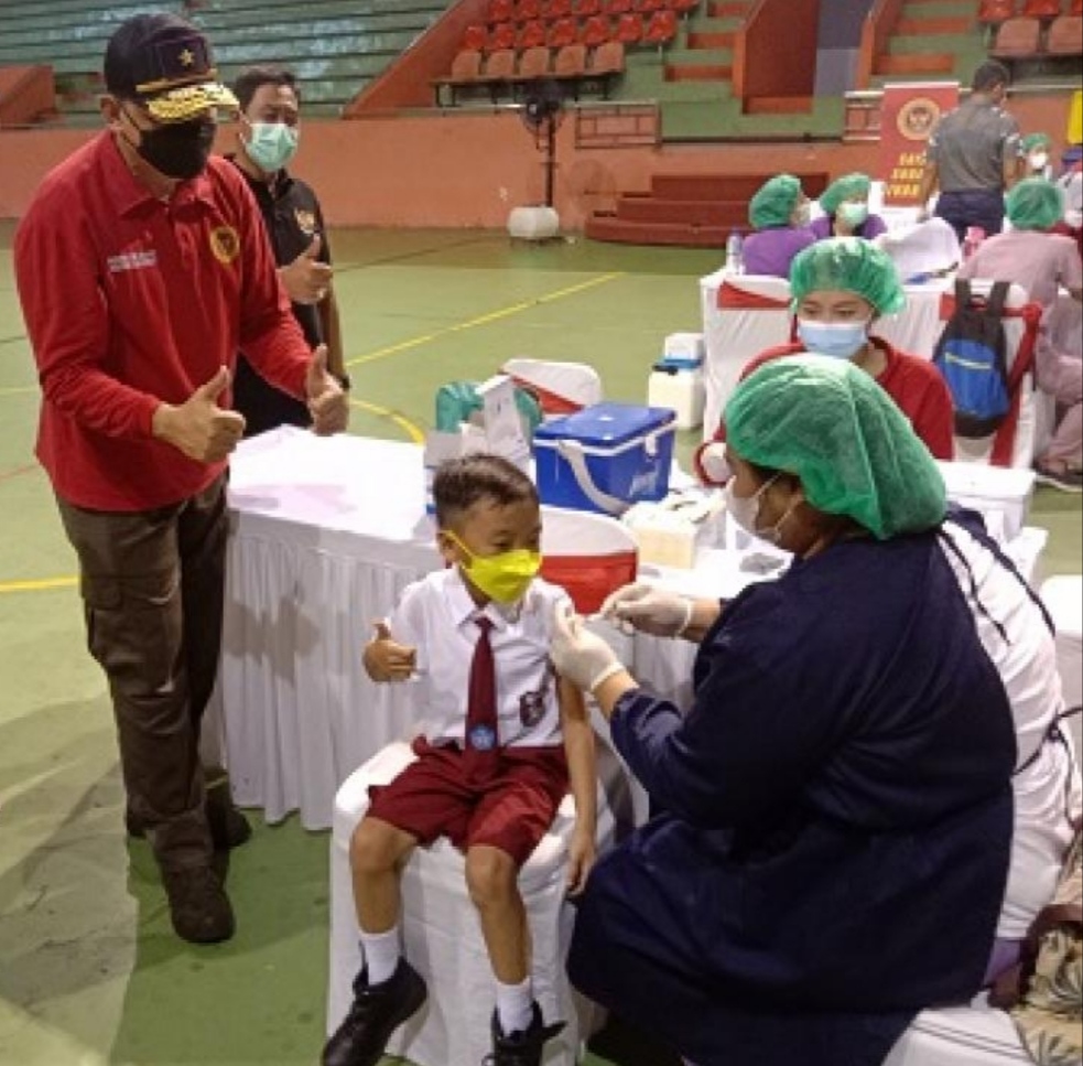 balitribune.co.id | Badung - Badan Intelijen Negara (BIN) Daerah Bali, kembali menggelar vaksinasi anak-anak usia 6 hingga 11 tahun. Kali ini dipusatkan di GOR Purna Krida Kerobokan Kuta Utara, Senin, (27/12). Tercatat pemberian vaksin dari BIN Daerah Bali sudah mencapai 6000 dosis dari target 8000 dosis.