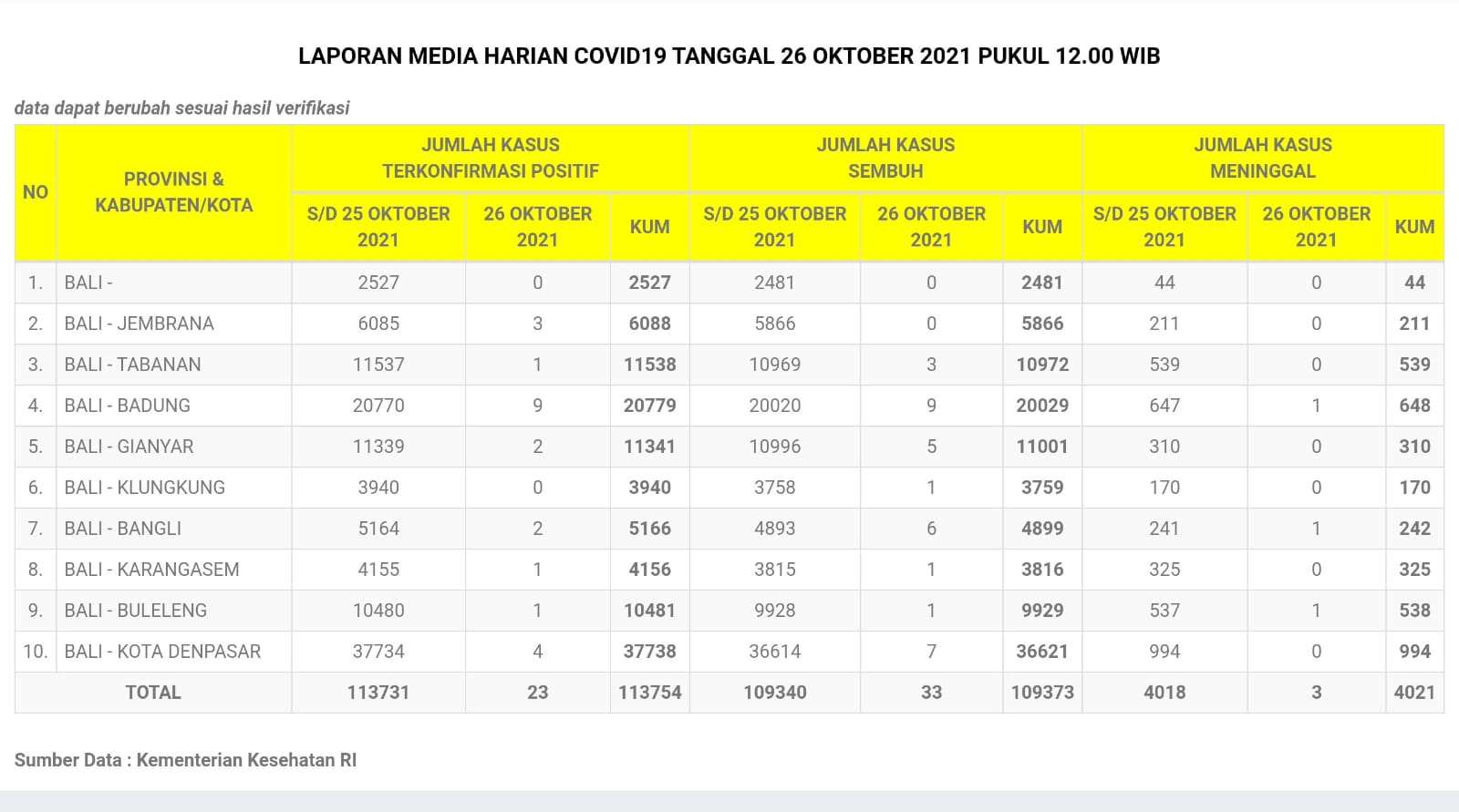 balitribune.co.id | Denpasar - Kasus meninggal dunia dengan status terkonfirmasi positif Covid-19 di Kota Denpasar kembali nihil. Berdasarkan data pada Selasa (26/10), kasus sembuh bertambah tujuh orang.