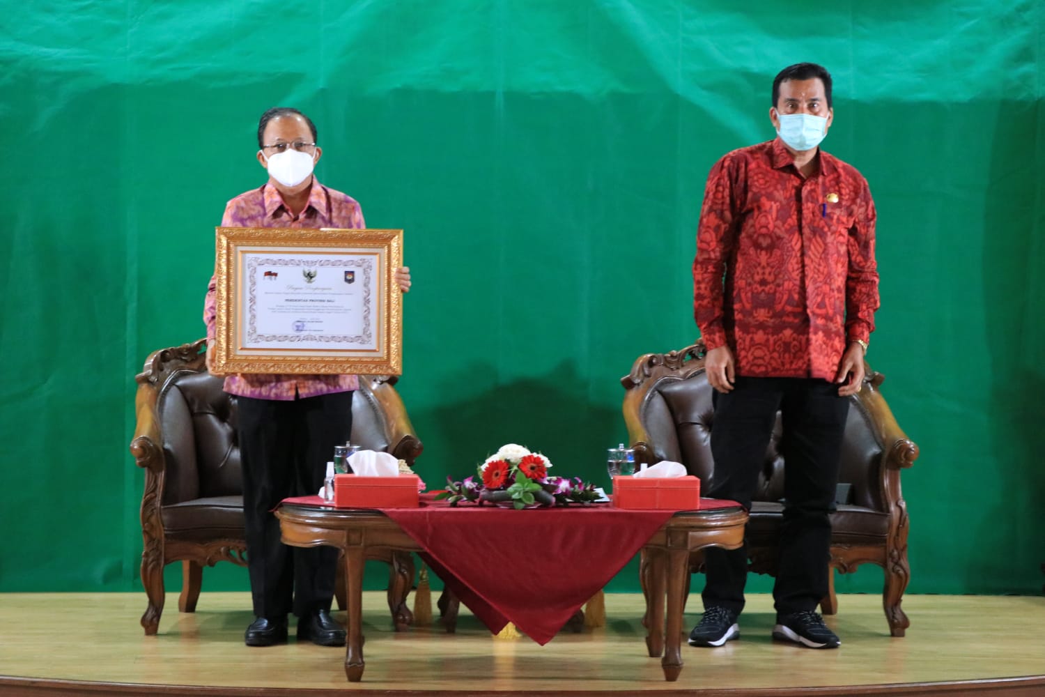 balitribune.co.id | Semarapura - Sekrataris Daerah Kabupaten Klungkung I Gede Putu Winastra mewakili Bupati I Nyoman Suwirta menghadiri acara penutupan pelaksanaan Kuliah Kerja Nyata (KKN) Universitas Hindu Negeri (UHN) I Gusti Bagus Sugriwa Denpasar di ruang rapat Praja Mandala, Kantor Bupati Klungkung, Selasa (31/8/2021).