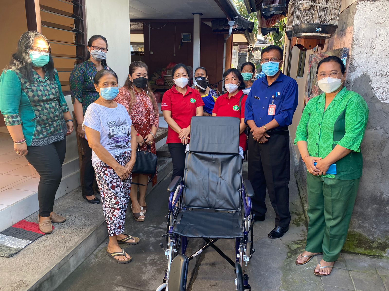 balitribune.co.id | Denpasar - Nyonya Sagung Antari Jaya Negara selaku Ketua K3S Kota Denpasar kembali menyerahkan bantuan kursi roda, kali ini kepada masyarakat penderita stroke, pada Selasa (24/8/2021).