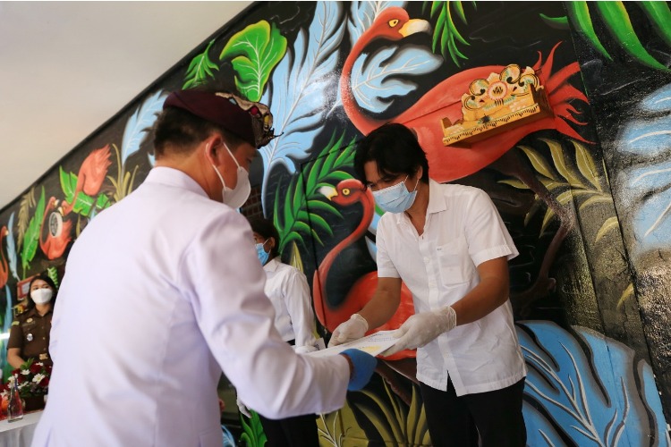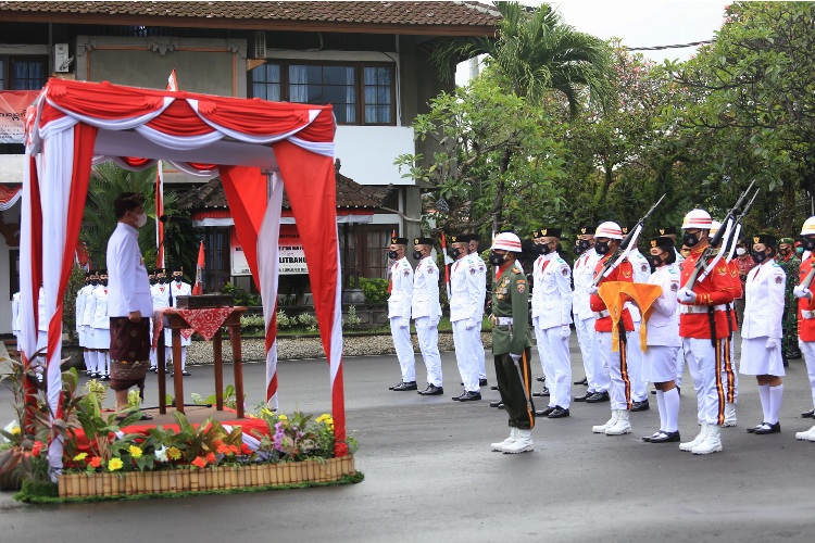 balitribune.co.id | Semarapura - Bertepatan dengan Hari Kemerdekaan Republik Indonesia (RI) ke-76 tahun 2021, Bupati Klungkung I Nyoman Suwirta menyalurkan bantuan beras dan garam beryodium untuk masyarakat terdampak Covid-19 di Kabupaten Klungkung.