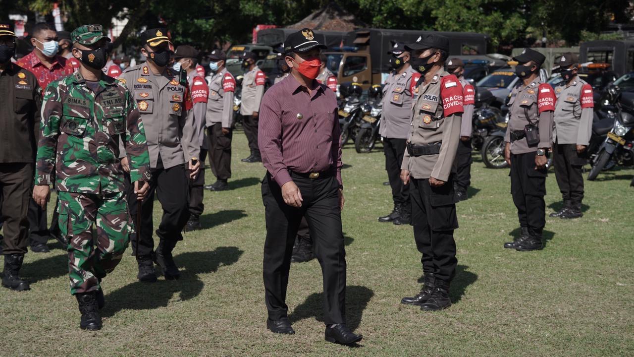balitribune.co.id | Semarapura - Bupati Klungkung I Nyoman Suwirta memimpin apel gabungan dalam rangka pemindahan dari isolasi mandiri (Isoman) ke isolasi terpusat (isoter) yang dilaksanakan di Mako Kodim 1610 Klungkung. Sabtu (14/8/2021).