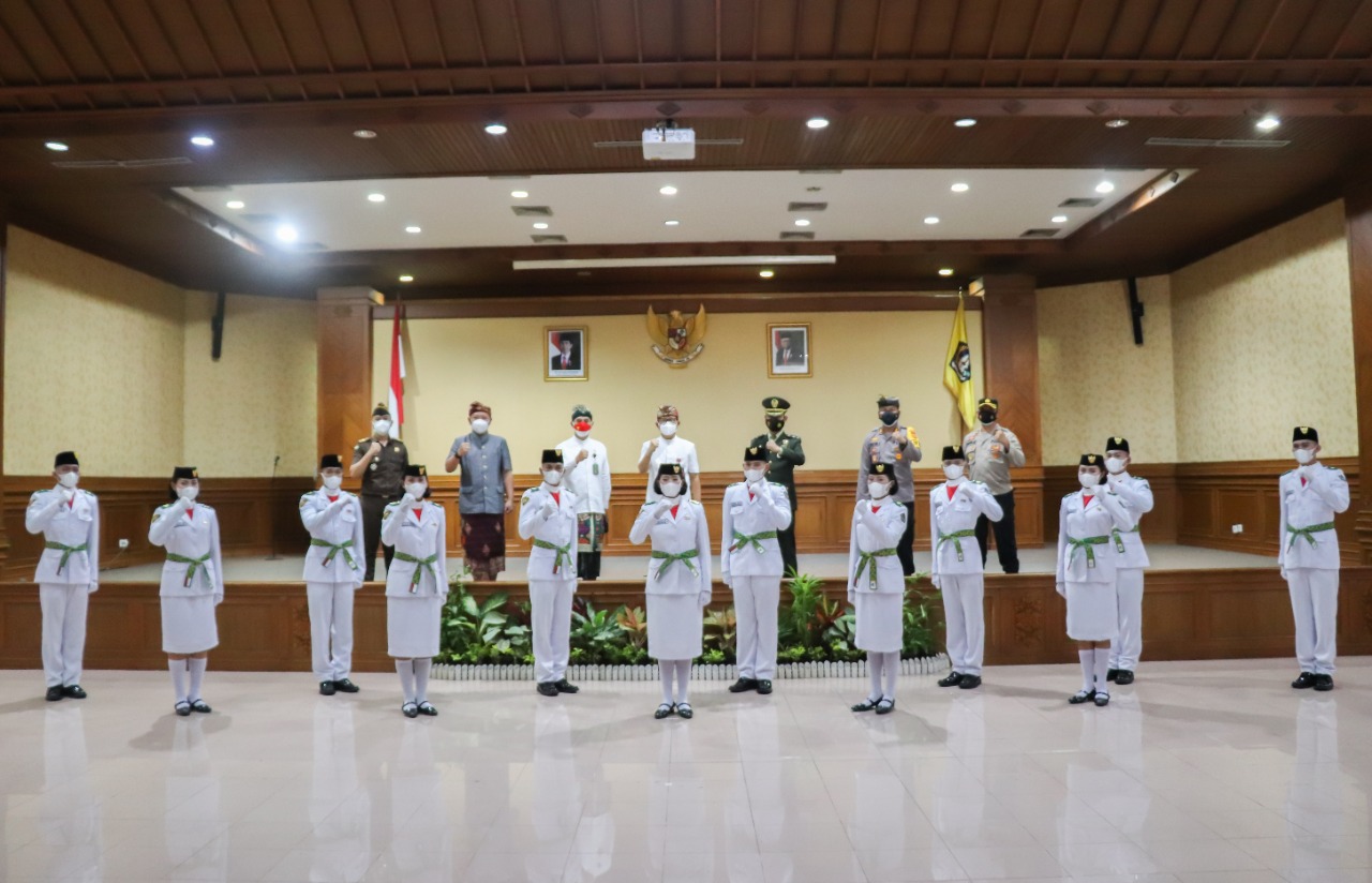 balitribune.co.id | Mangupura - Pasukan Pengibar Bendera Pusaka (Paskibraka) Sang Merah Putih dalam acara peringatan detik-detik Proklamasi Kemerdekaan Indonesia pada Tanggal 17 Agustus 2021 yang akan datang, secara resmi dikukuhkan oleh Sekda Badung I Waya