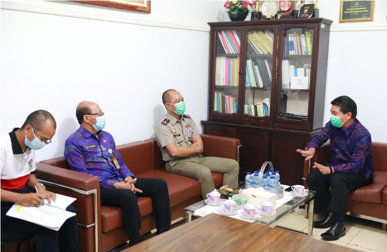 balitribune.co.id | Semarapura - Bupati Klungkung I Nyoman Suwirta didampingi Kepala Dinas Lingkungan Hidup dan Pertanahan (DLHP) Klungkung, I Ketut Suadnyana mengunjungi Kantor Agraria dan Tata Ruang/Badan Pertanahan Nasional (ATR/BPN) Klungkung, Selasa (2/2/202