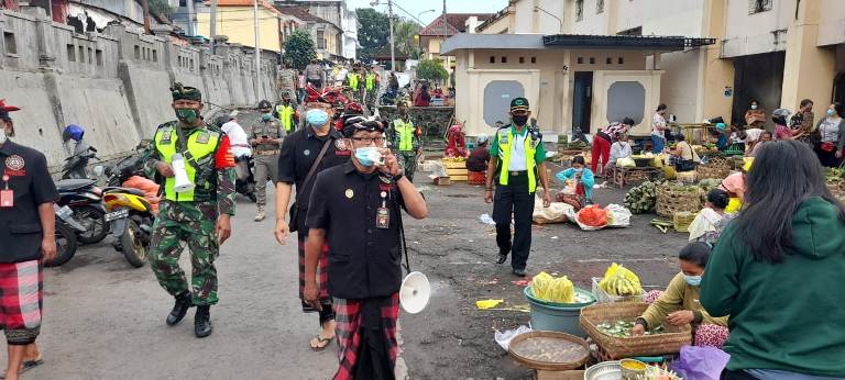 Balitribune.co.id | Semarapura - Di tengah suasana Pandemi Covid 19 Satgas Enforce Kodim 1610/Klungkung yang terdiri dari personel gabungan TNI, Polri, Satpol PP dan Pecalang, Sabtu (2/1/2021) melakukan kegiatan patroli dan penertiban kerumunan dalam rangka
