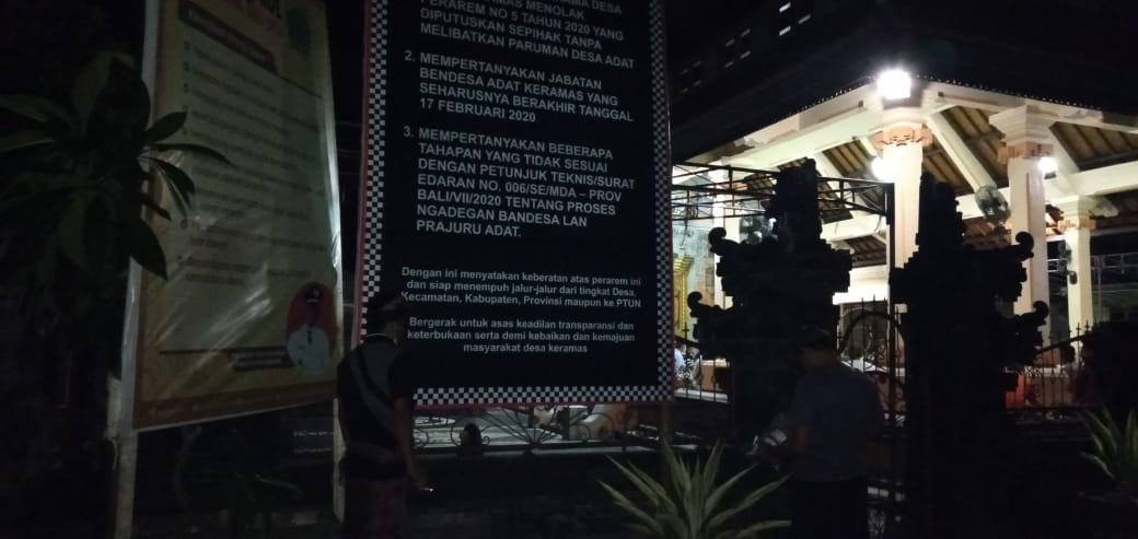 Balitribune.co.id | Gianyar - Lantaran tidak diawali sosialiasi atau pembahasan ke krama, Perarem Nomer 5 tahun 2020 Desa Adat Keramas, tentang proses ngadegan bendesa lan prajuru, ditolak oleh krama di masing-masing banjar.