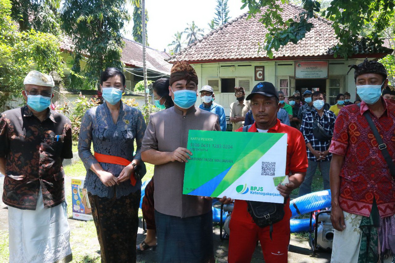 balitribune.co.id | Bangli - Sejumlah alat sistem pertanian (alsintan) diserahkan kepada kelompok tani di Bangli. Penyerahan alsintan dilakukan di kantor Dinas Pertanian Ketahanan Pangan dan Perikanan (PKP) Bangli, Kamis (5/11). Selain penyerahan alsintan, ribuan kartu BPJS Ketenagakerjaan juga diserahkan kepada para petani.