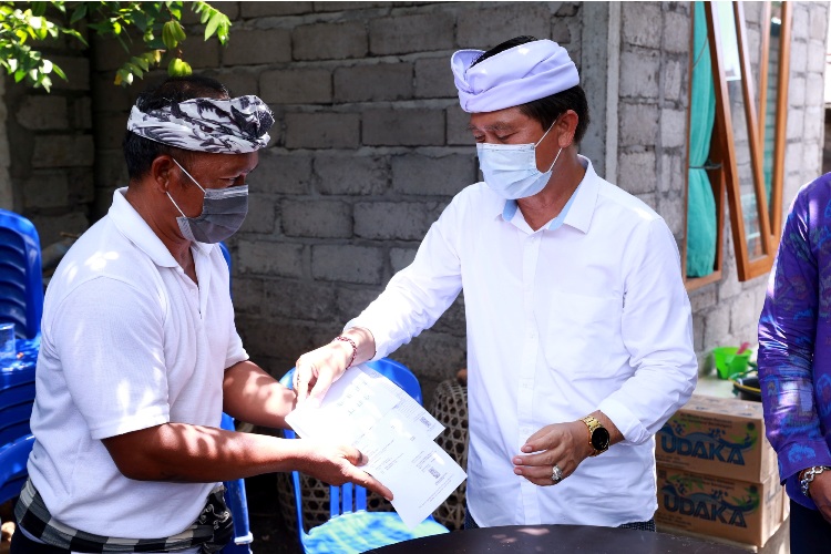Balitribune.co.id | Semarapura - Bupati Klungkung I Nyoman Suwirta didampingi Kepala Dinas Kependudukan dan Catatan Sipil I Komang Dharma Suyasa melayat ke salah satu masyarakat yang anggota keluarganya meninggal dunia, di kediaman I Ketut Bagiastra, Dusun Suwitrayasa, Desa Pesinggahan, Dawan, Selasa (3/11).