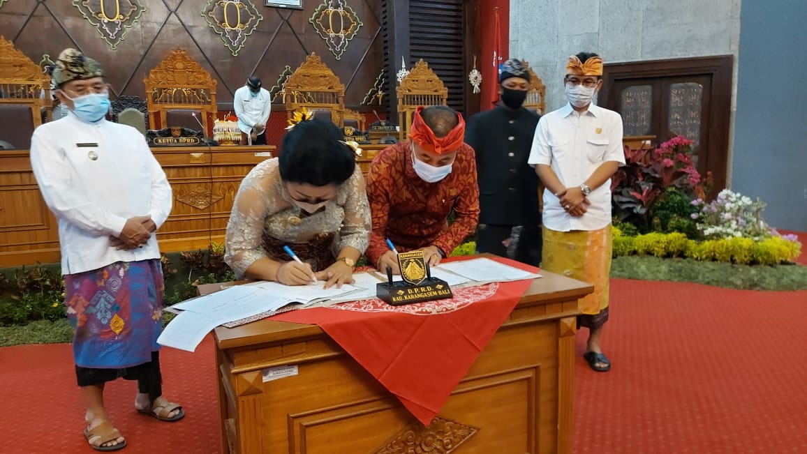 balitribune.co.id | Amlapura - Setelah mencermati Ranperda KUA PPAS 2021 dalam pembahasan yang dilaksanakan antara Badan Anggaran DPRD Karangasem dengan Tim Anggaran Pemerintah Daerah (TAPD) Kabupaten Karangasem, DPRD Karangasem akhirnya mensahkan Ranperda KUA PPAS Karangasem Tahun Anggaran 2021 tersebut menjadi Peraturan Daerah, dalam rapat paripurna yang dipi