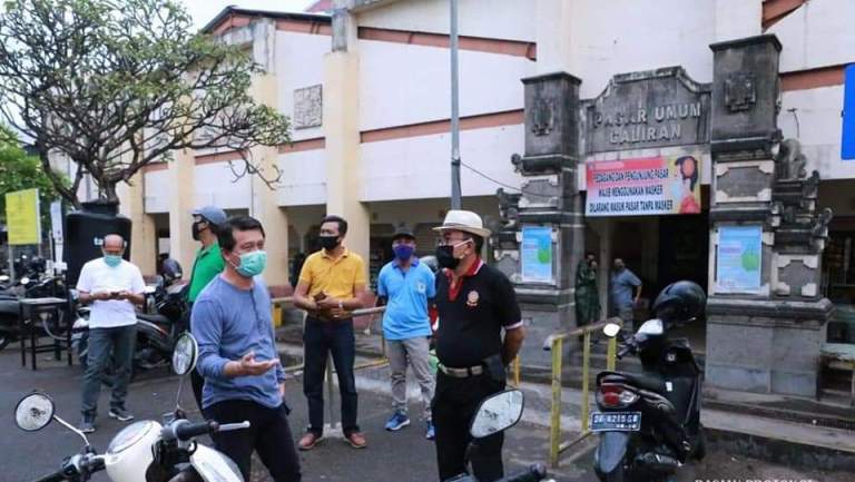 Balitribune.co.id | Semarapura - Bupati Klungkung I Nyoman Suwirta bersama Kasat Pol PP dan Damkar I Putu Suarta, Kepala UPT. Pasar Semarapura I Komang Sugianta, kembali turun untuk melihat situasi di Pasar Umum dan Terminal Galiran, Klungkung, Sabtu (16/5).