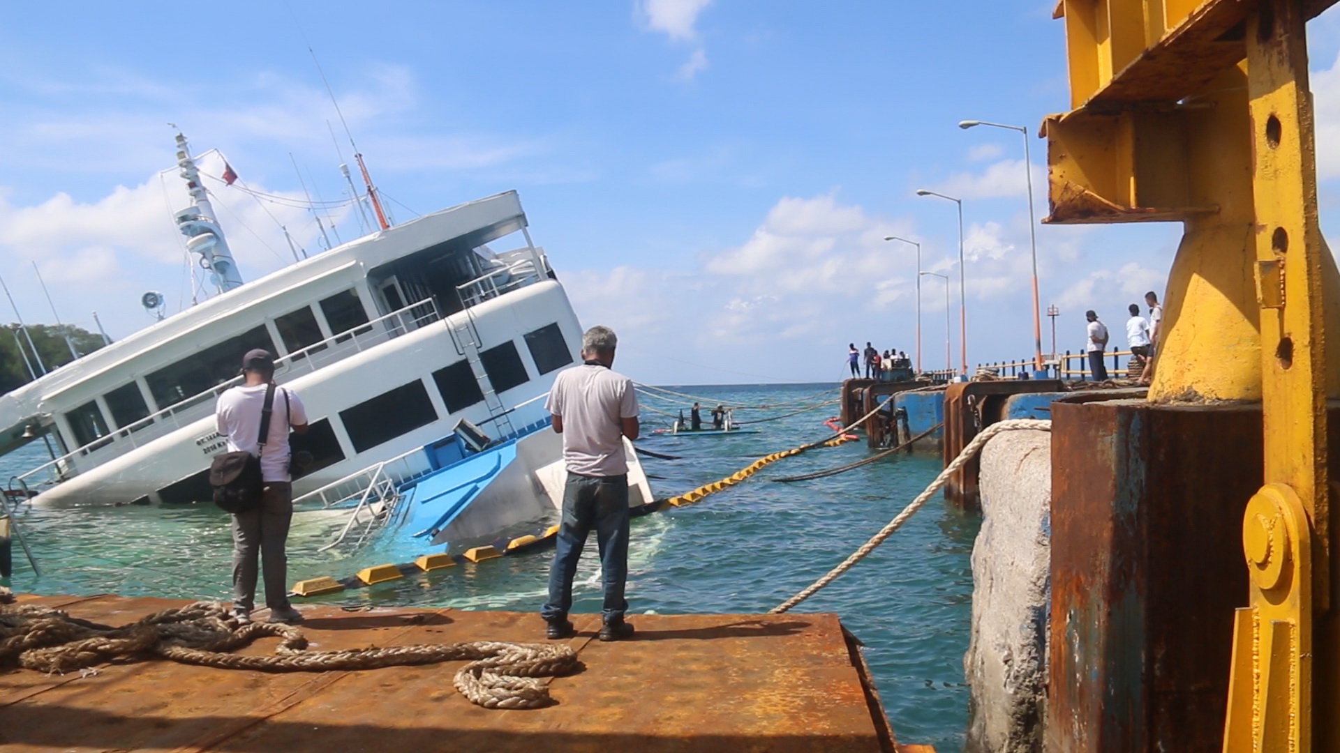 balitribune.co.id | Amlapura - Hingga saat ini, teknisi yang di datangkan oleh Darma Lautan Utama selaku operator kapal KMP Darma Rucitra III yang karam di areal kolam Dermaga II Padang Bai sedalam 8 meter tersebut, belum mulai melakukan proses evakuasi, kendati seluruh peralatan evakuasi sepert Marine Rubber Airbag atau balon pengapung sudah di St
