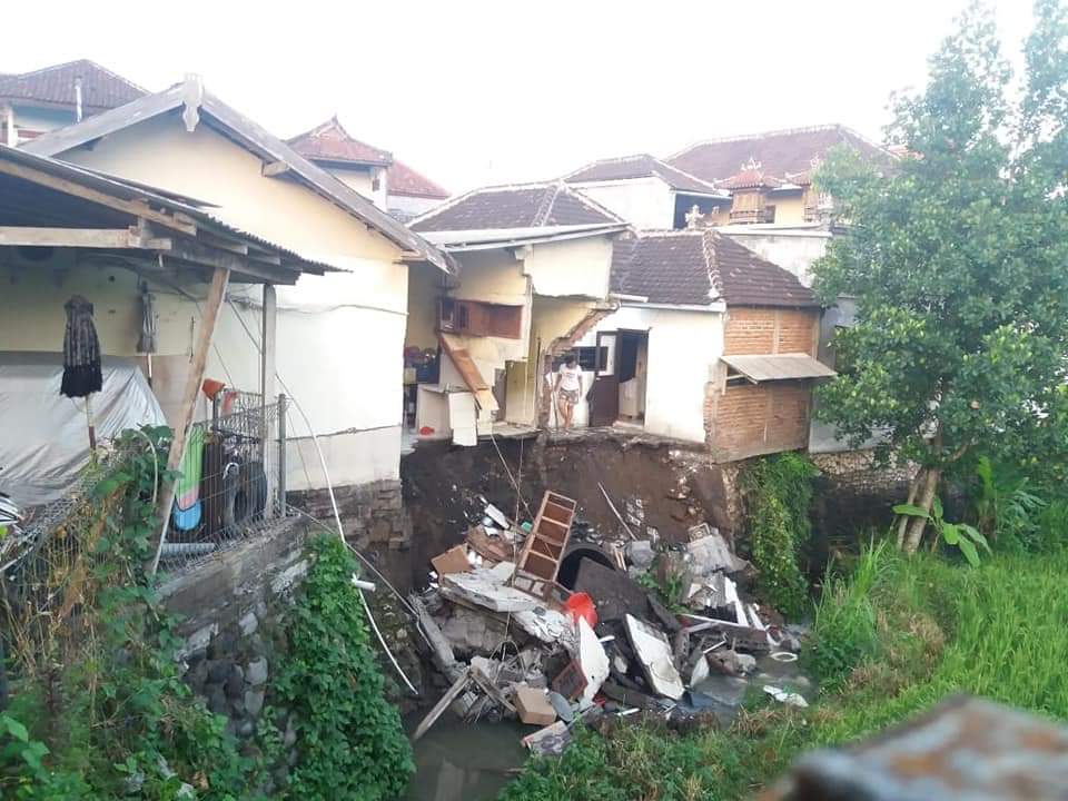 Balitribune.co.id | Mangupura - Dua rumah warga di Banjar Bhinneka Nusa Kauh, Desa Dalung, Kuta Utara tergerus longsor, Senin (13/4/2020) sekitar pukul 02.00 dinihari. Beruntung longsor tidak sampai menggerus keseluruhan unit bangunan ke dasar sungai. Kerugian diperkirakan mencapai puluhan bahkan ratusan juta rupiah.