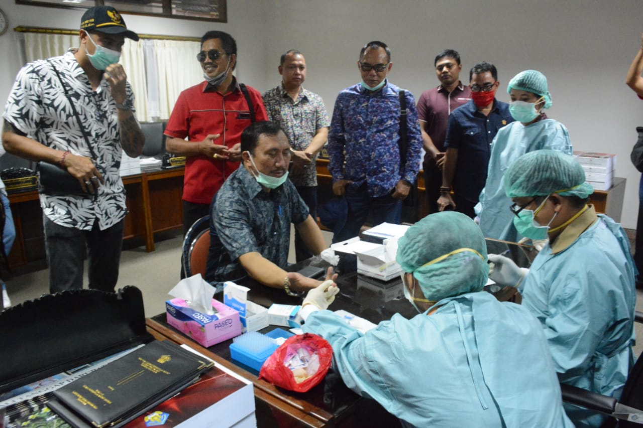 balitribune.co.id | Denpasar - Sebanyak 39 anggota DPRD Provinsi Bali melakukan rapid test Covid-19 di Gedung Dewan, Selasa (31/3/2020). Tes dilakukan lantaran para wakil rakyat di Renon itu sering melakukan kunjungan kerja ke luar daerah.