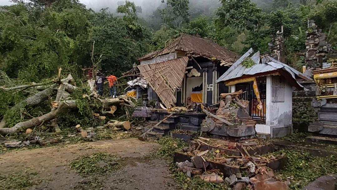13 Bangunan Pura Hancur Tertimpa Beringin