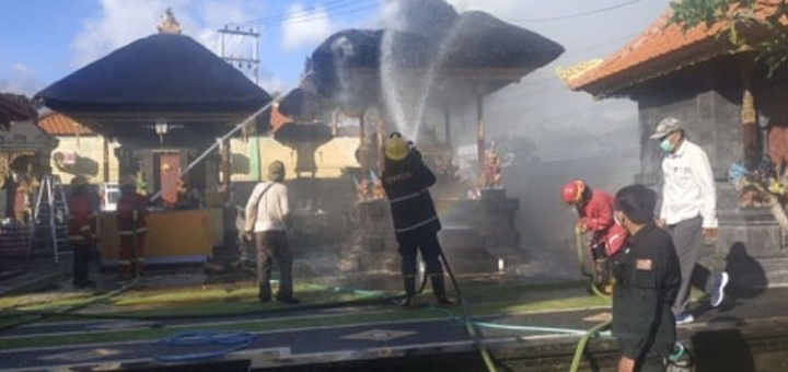 balitribune.co.id | Denpasar - Kebakaran kembali terjadi. Pelinggih Pura Dalem Teges di Jalan Gunung Tangkuban Perahu, Banjar Teges Desa Padang Sambian, Denpasar Barat (Denbar), Sabtu (18/1) jam 16.15 Wita terbakar.