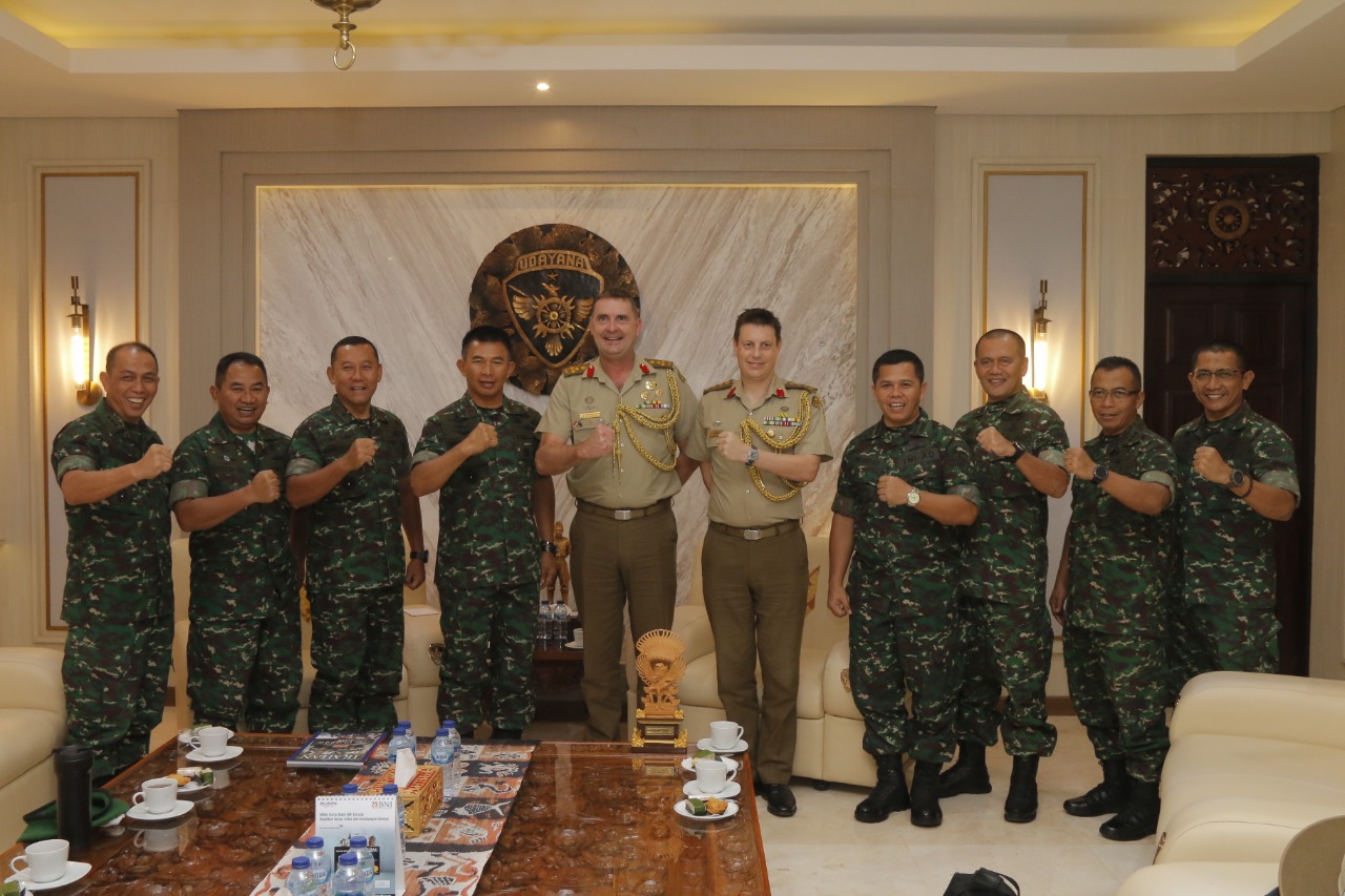 balitribune.co.id | Denpasar - Didampingi Kasdam IX/Udayana Brigjen TNI Kasuri, Irdam IX/Udayana, Kapok Sahli Pangdam IX/Udayana dan para Asisten Kasdam IX/Udayana serta Kapendam IX/Udayana, Pangdam IX/Udayana Mayjen TNI Benny Susianto, SIP, menerima kunjungan Atase Australia bersama rombongan yang dipimpinan Brigjen Justin Roocke selaku Atase P