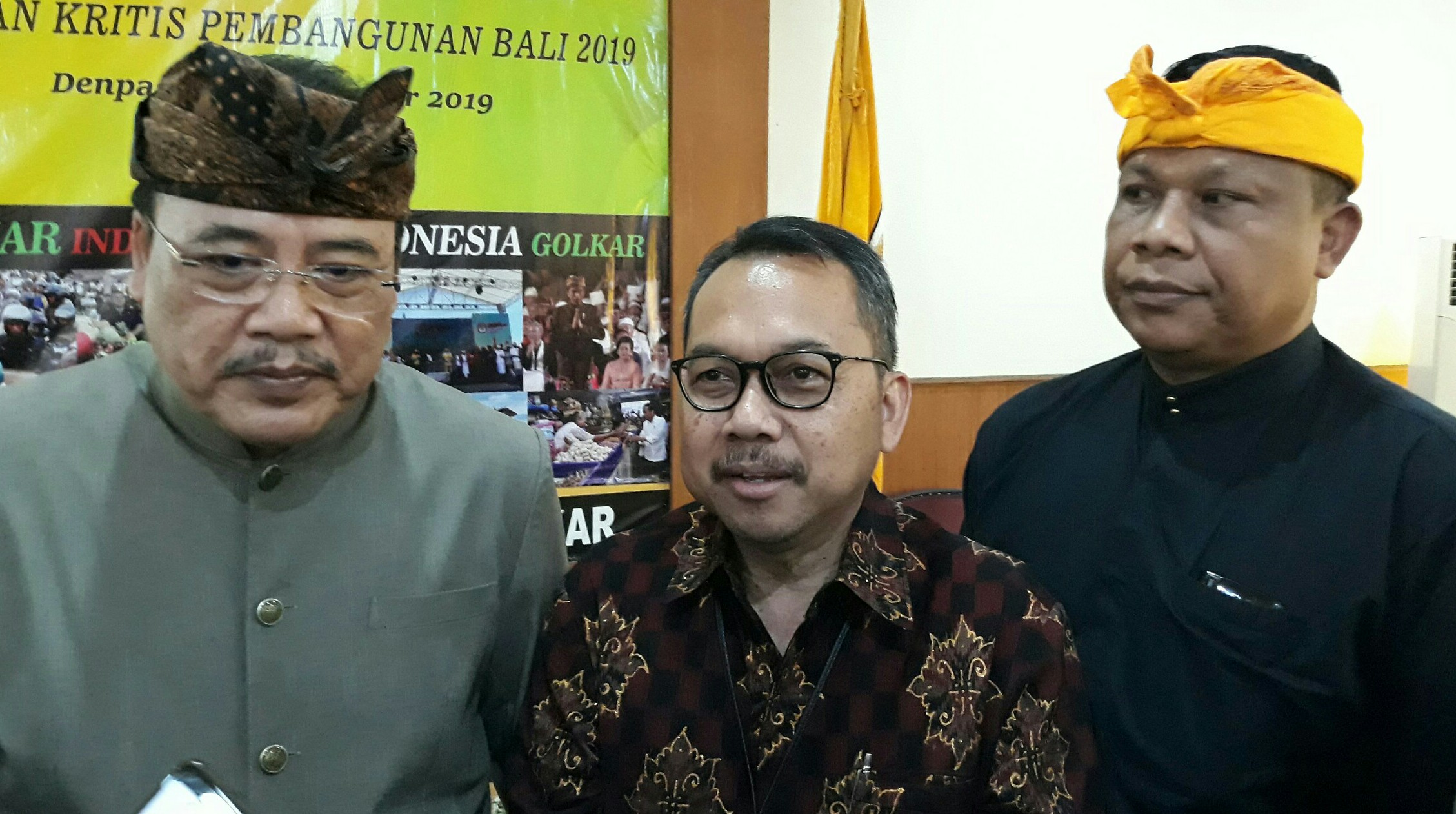 balitribune.co.id | Denpasar - Didampingi Sekretaris Partai Golkar Provinsi Bali, I Nyoman Sugawa Kory, Kepala KPw BI Bali, Trisno Nugroho yang hadir di Focused Group Discussion (FGD) bertema "Refleksi Akhir Tahun: Catatan Kritis Pembangunan Bali 2019" yang digelar di Kantor DPD Partai Golkar Provinsi Bali, Senin dalam menyambut tahun baru 2020.