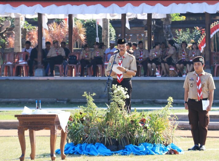 balitribune.co.id | Tabanan - Kapolda Bali Irjen Pol. Petrus R. Golose memimpin pembentangan bendera merah putih sepanjang 1.945 meter dalam acara Ikrar Kebangsaan yang dilaksanakan di areal persawan di Desa Jatiluwih, Kecamatan Penebel, Tabanan, Rabu (14/8).