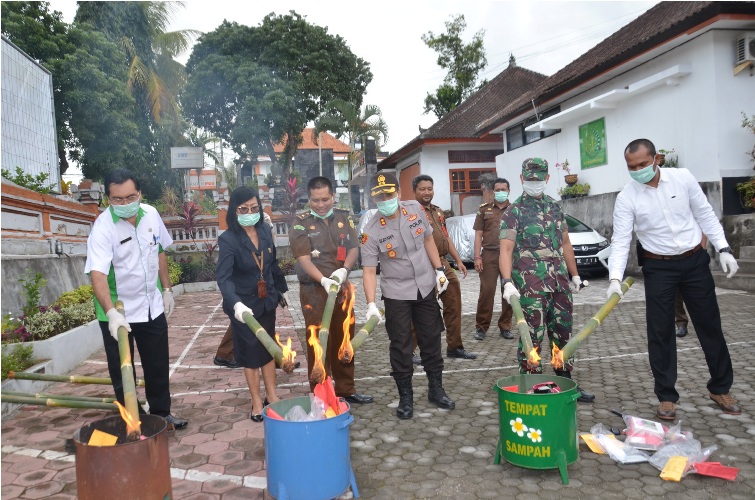 balitribune.co.id | Semarapura - Serangkaian Hari Bhakti Adhayaksa yang ke-59 tahun 2019, di Kantor Kejaksaan Negeri Klungkung, Rabu (17/7), dilaksanakan pemusnahan barang bukti perkara pidana yang sudah berkekuatan hukum tetap oleh Kejaksaan Negeri Klungkung.