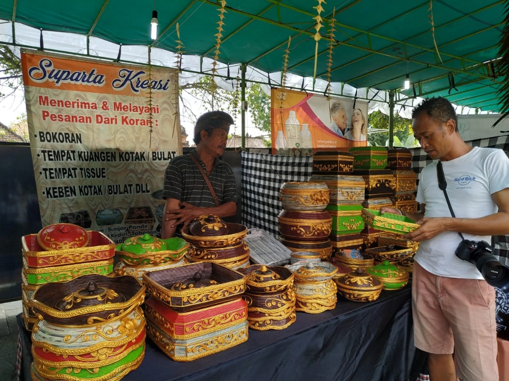 balitribune.co.id | Tabanan - Kerajinan peralatan ke pura menggunakan koran bekas milik I Ketut Suparta di Banjar Pande, Desa/Kecamatan Kediri Tabanan kesulitan bahan baku. Padahal permintaan konsumen terhadap kerajinan berbahan organik ini sangat tinggi.