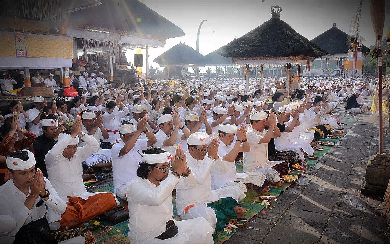 Bali Tribune, Karangasem - Gubernur Bali Wayan Koster dan Wakil Gubernur Tjokorda Oka Artha Ardhana Sukawati (Cok Ace) mengikuti rangkaian upacara nedunang Ida Bhatara serangkaian Karya Panca Wali Krama di Pura Besakih, Karangasem, Jumat (1/3). Usai melakukan persembahyangan yang juga diikuti beberapa Bupati/Wakil Bupati, Bendesa Agung MUDP dan Kepala OPD di lingkup Provinsi Bali, Gubernur Koster menyampaikan harapannya agar semua umat Hindu baik di Bali maupun di