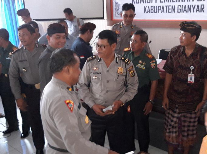 BALI TRIBUNE - Memastikan Pemilu Presiden dan Pemilu Legilastif 2019 berjalan aman dan lancar KPU Gianyar dan aparat keamanan merapatkan barisan. Dalam Rapat Koordinasi Pengamanan Pemilu 2019 di Kantor KPU Gianyar, Kamis (13/12) kemarin, masing-masing TPS pun dipetakan.