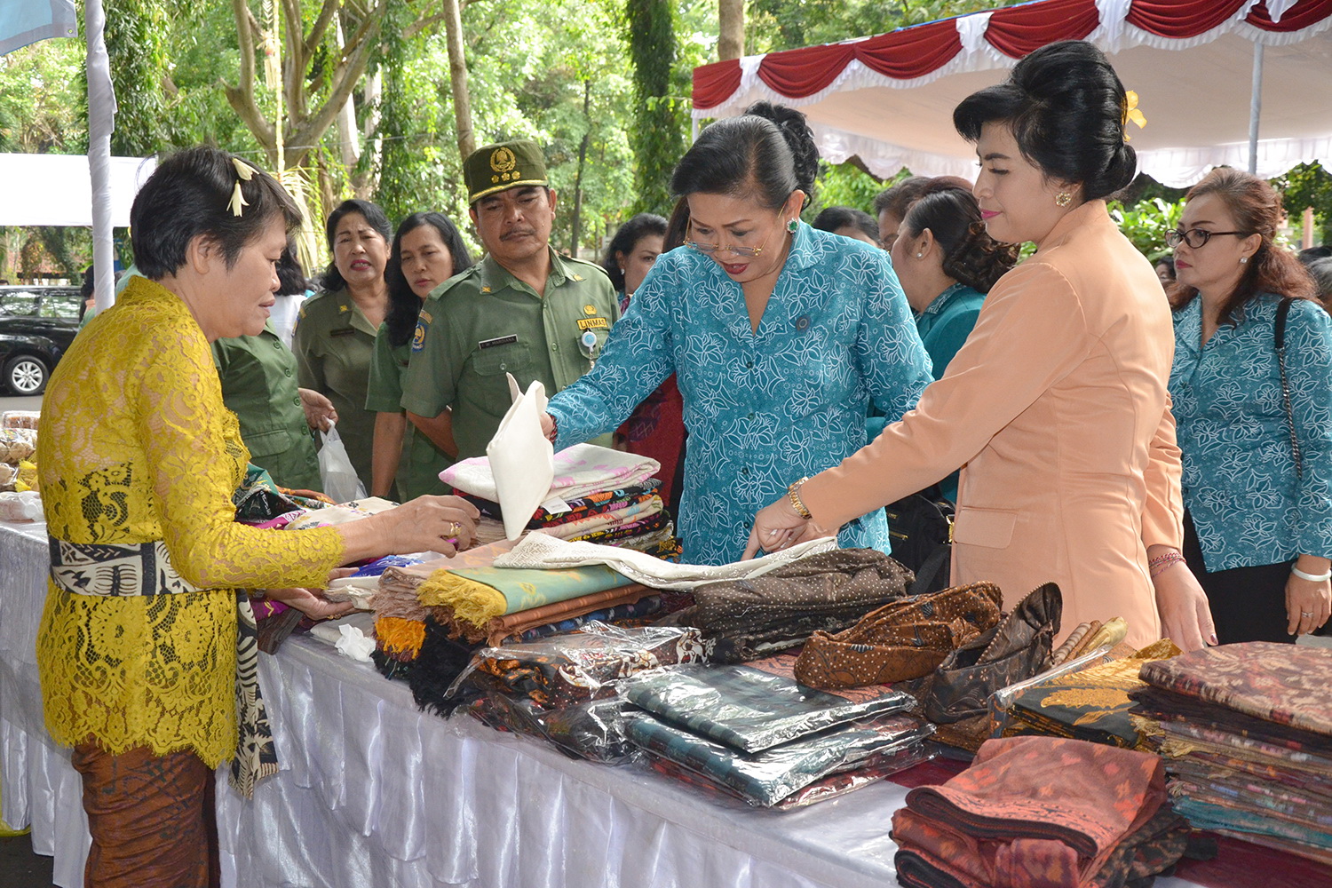 BALI TRIBUNE - Pasar murah menyambut hari raya Galungan dan Kuningan kembali digelar Pemerintah Provinsi Bali melalui Dinas Ketahanan Pangan berkejasama dengan TP PKK Provinsi Bali dan Dharma Wanita Persatuan Provinsi Bali, digelar selama sehari di Depan Gedung Wiswa Sabha Utama, Kantor Gubernur Bali, Denpasar, Rabu (19/12). Ditemui usai melakukan peninjauan kepara pedagang, Ketua TP PKK Provinsi Bali Ny.