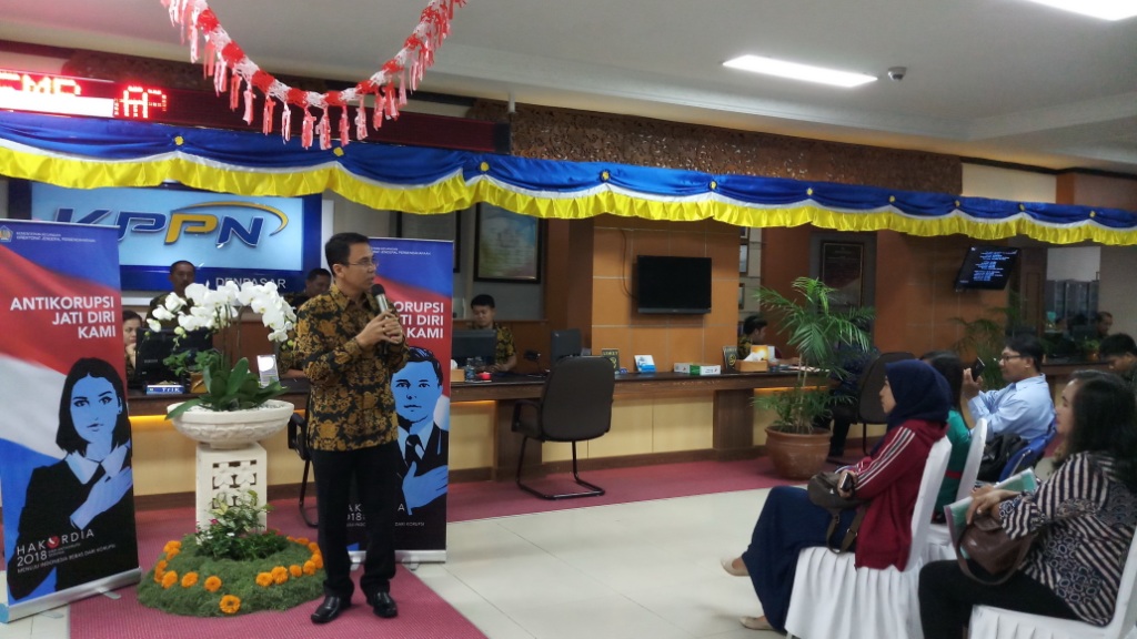 BALI TRIBUNE - Kantor Pelayanan Perbendaharaan Negara (KPPN) Denpasar melakukan kampanye anti korupsi bersama mitra kerja dalam rangka memperingati Hari Anti Korupsi 2018 di kantor setempat, Renon, Denpasar, Jumat (7/12).