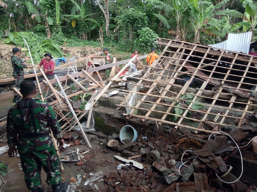 BALI TRIBUNE - Kondisi rumah warga Wayan Soma (60) warga Banjar Tunjung Desa Delod Berawah, Mendoyo yang luluh lantah akibat terjangan puting beliung pada Rabu (7/11) dini hari sekitar pukul 00.30 Wita mengundang keperihatinan orang nomor satu di Bumi Makepung.
