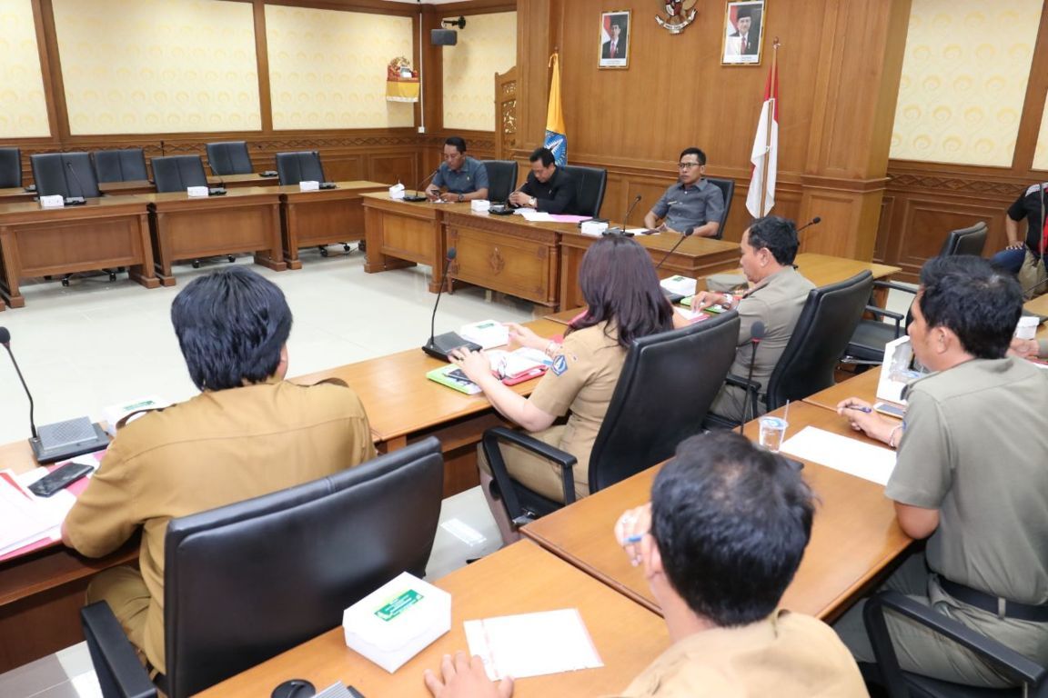 BALI TRIBUNE - Komisi I DPRD Badung menggelar rapat kerja bersama Dinas Penanaman Modal dan Pelayanan Terpadu Satu Pintu (DPMPTSP) dan Satuan Polisi Pamong Praja (Satpol PP) Badung, Senin (8/10). Rapat digelar terkait penertiban reklame tak berijin di kawasan Badung selatan menjelang pelaksanaan Annual Meeting (AM) International Monetary Fund-World Bank (IMF-WB) 2018. Rapat dipimpin Ketua Komisi I DPRD Badung, I Wayan Suyasa didampingi sejumlah angg