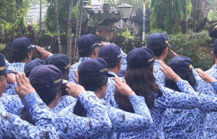 BALI TRIBUNE - Untuk pertama kalinya pasca resmi dilantik menjadi Wakil Gubernur Bali, Wagub Tjokorda Oka Artha Ardhana Sukawati (Cok Ace) tampil di depan ASN Pemprov Bali pada apel disiplin di Halaman Kantor Gubernur, Senin (17/9/2018).