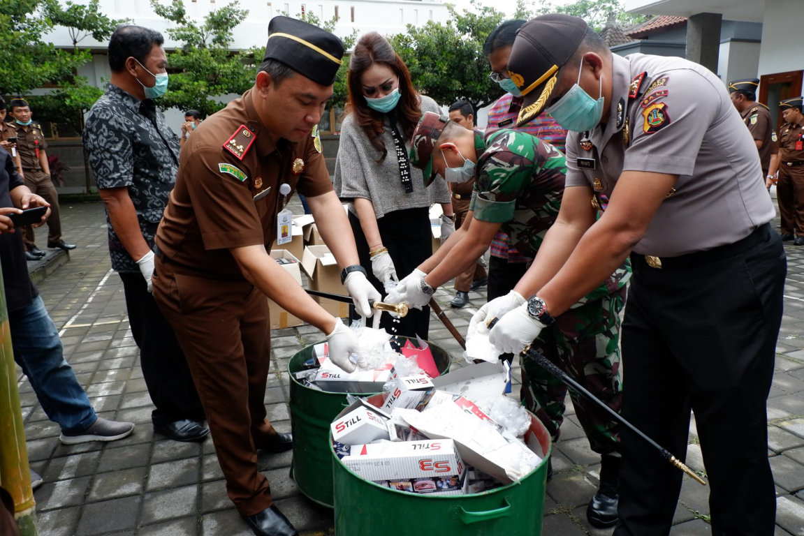 BALI TRIBUNE - Sebanyak 115,29 gram sabu, 11,56 gram ganja, 3 pucuk senjata api dan 3 soft gun, sajam, ratusan slop rokok ilegal dan lainnya dimusnahkan oleh Kejari Gianyar, Jumat (31/8).