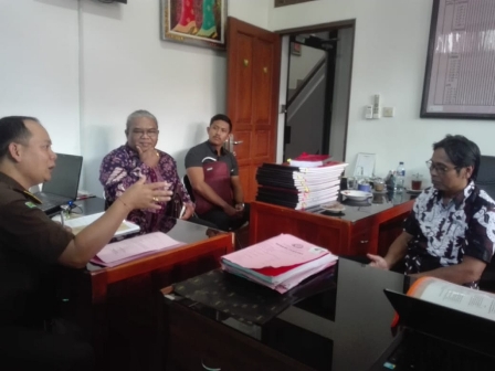 BALI TRIBUNE - Bupati Klungkung I Nyoman Suwirta menerima kedatangan tim pemeriksa penyelenggaraan pemerintahan daerah dari Inspektorat Provinsi Bali. Kedatangan tim diterima Bupati diruang kerjanya, Kamis (6/9). Ada tujuh Instansi yang akan diperiksa oleh tim selama sebulan di Kabupaten Klungkung.