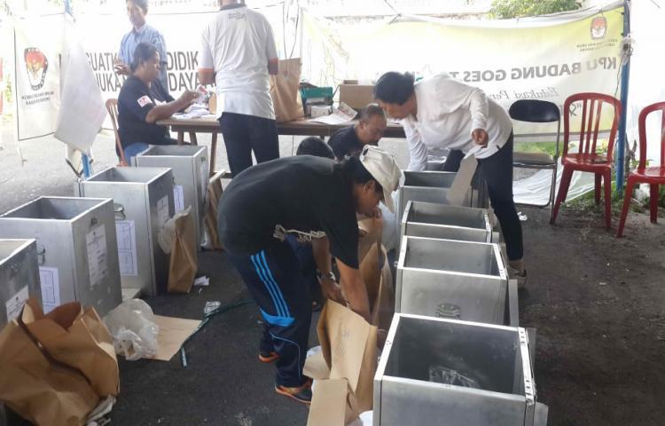 BALI TRIBUNE - Jelang hari pencoblosan Pemilihan Gubernur dan Wakil Gubernur Bali pada 27 Juni 2018, KPU Kabupaten Badung mulai melakukan pengepakan logistik ke dalam kotak suara dengan mengundang PPK dan PPS se-Kabupaten Badung. Pengepakan dilakukan mulai 18 hingga 22 Juni 2018. Setelah proses pengepakan dengan melibatkan PPK dan PPS se-Kabupaten Badung, selanjutnya KPU Kabupaten Badung akan melakukan proses distribusi logistik.