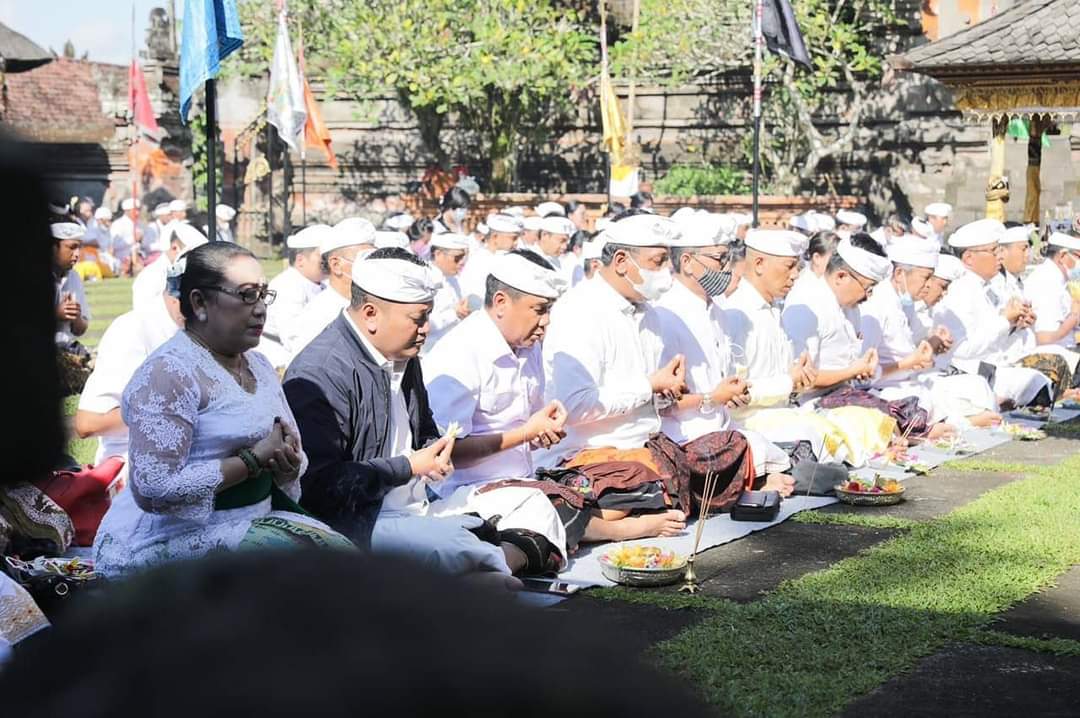 Prokes Ketat, Penganyaran Pemkab Gianyar di Pura Mandhara Giri Semeru Agung