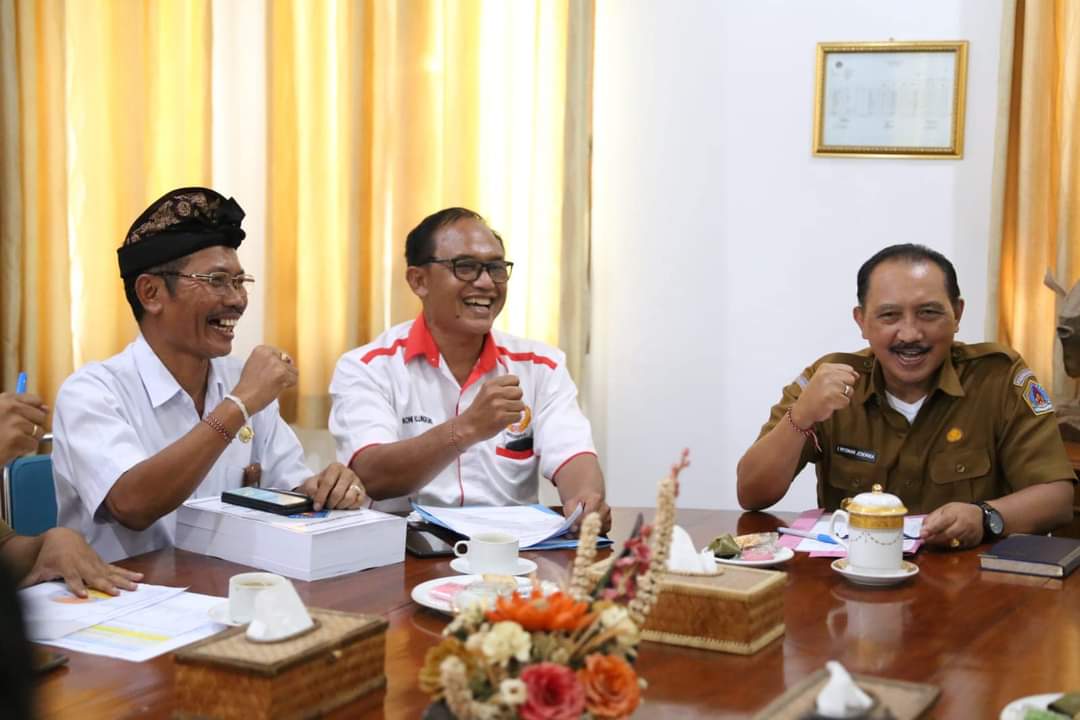 Balitribune.co.id | Semarapura - Penjabat Bupati Klungkung I Nyoman Jendrika menerima audiensi Pengurus KONI Kabupaten Klungkung di ruang kerjanya, Senin (5/1/2024).